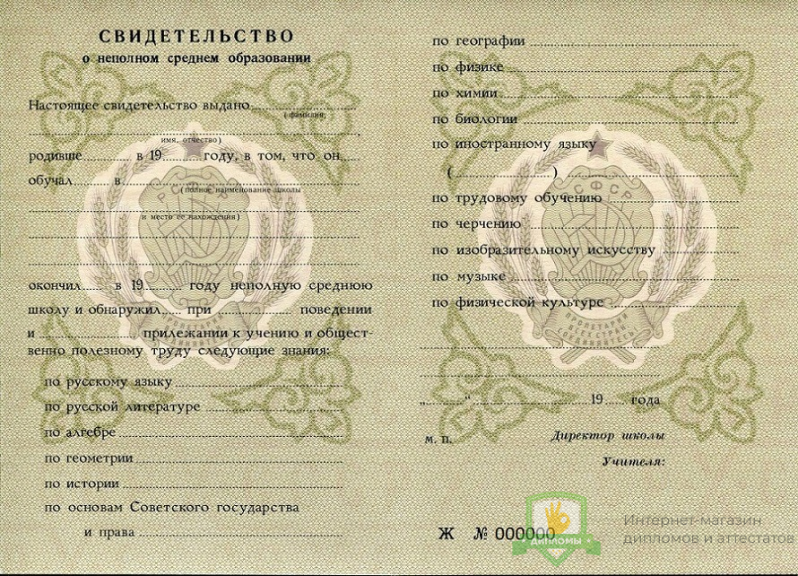Клиентам предлагаем комфортные и выгодные условия покупки аттестатов за 8 класс 1972 - 1993 год: