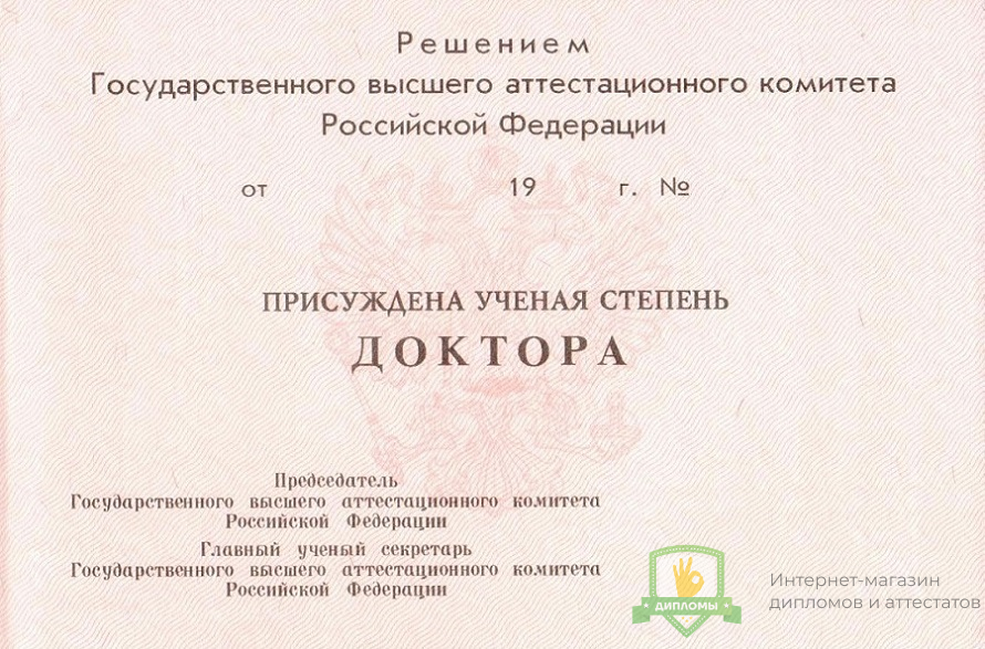 Клиентам предлагаем комфортные и выгодные условия покупки дипломов доктора наук 1993 - 2000 год: