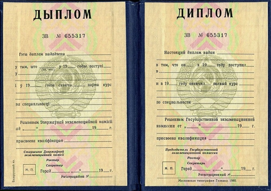 - при необходимости можно сделать заказ дипломов ВУЗа Белоруссии СССР;
